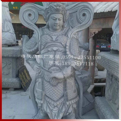 4、韋陀:韋陀菩薩是佛的護(hù)法神(佛教中另外還有一位護(hù)法天神韋天將軍)。相傳他姓韋名琨,是南方增長天王屬下八大神將之一,位居32員神將之首(四大天王每人手下有八神將)。據(jù)說,在釋迦佛入涅時,邪魔把佛的遺骨搶走,韋陀及時追趕,奮力奪回。因此佛教便把他作為驅(qū)除邪魔,保護(hù)佛法的天神。從宋代開始,中國寺廟中供奉韋陀,稱為韋陀菩薩,常站在彌勒佛像背后,面向大雄寶殿,護(hù)持佛法,護(hù)助出家人。