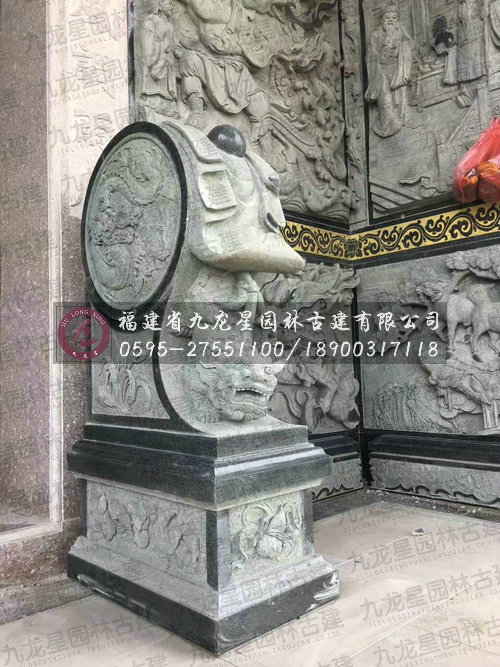 九龍星園林古建石雕產品內容涵蓋宮觀寺廟、塔亭柱欄、龍獅虎獸、神佛造像、石雕精品、大型城市景觀雕像等,力求于“方寸之間”勾描中國南派雕刻藝術精魂的傳統工藝、傳統題材、傳統手法,展示惠安雕刻出神入化的精湛技藝和亙古長明的文化傳承。