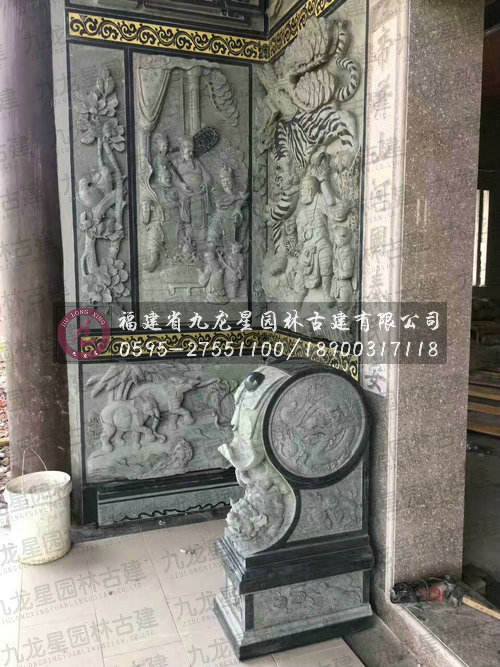 九龍星園林古建最新寺廟外墻青石浮雕安裝實拍圖