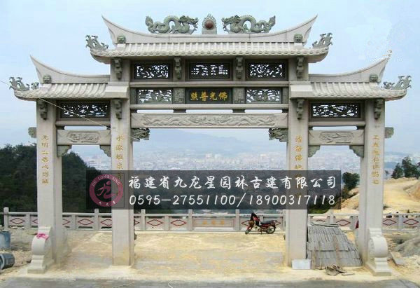 牌樓最早是由木門的演變而來的,是中國傳統建筑藝術的結晶,是裝飾效果極強的標志性建筑。現在石雕牌坊與石雕牌樓的名稱現在都在混用,但是在最初石雕牌坊和石雕牌樓在設計結構上是有很大的不同的。首先,石雕牌樓上面有一個斗拱和屋頂,它有更大的烘托氣氛。而石雕牌坊在設計結構上就比較簡單了,但是由于它們都是我國古代用于表彰、紀念、裝飾、標識和導向的一種建筑物,而且又多建于宮苑、寺觀、陵墓、祠堂、衙署和街道路口等地   方,再加上長期以來老百姓對“坊”、“樓”的概念不清,所以到最后兩者成為一個互通的稱謂了。