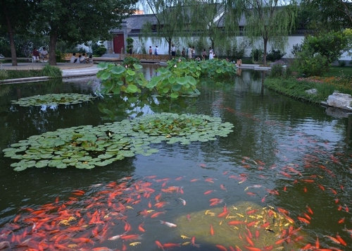 而金魚是源于晉、盛于宋。佛經宣揚"人死精神不滅",因果報應,不殺生,不偷盜,不淫邪,不妄言,不飲酒,慈悲為本,行善修道等等教義。受"不殺生"的影響,民間偶然捕獲的奇異魚類,亦紛紛被送往放生池放生,久而久之,一些佛寺放生池便聚集了為數眾多的金鯽魚。不論是西林寺還是月波樓、六和塔。眾多歷史文獻中都有對佛教的頌揚及放生的記載。可以說,中國金魚從一開始萌芽,就與佛教有著千絲萬縷的聯系。