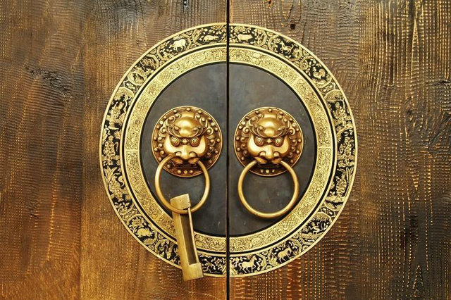 門環的造型上能夠折射出宅主的身份和地位,是中國門文化中最能體現禮制建筑等級的裝飾符號之一。獸面銜環是帝王和權貴之家常見的樣式,如明清皇家建筑門環多為龍形鋪首銜環,象征皇家的威儀,具有更多的禮制涵義。民宅不能使用獸面銜環,而使用底盤為圓形、方形、六邊形、菊花形或梅花形,中央為圓形凸起的鋪首,再配以金屬掛件的門環。