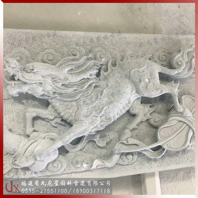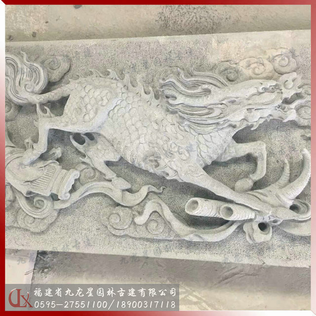 青石浮雕麒麟獻瑞圖案