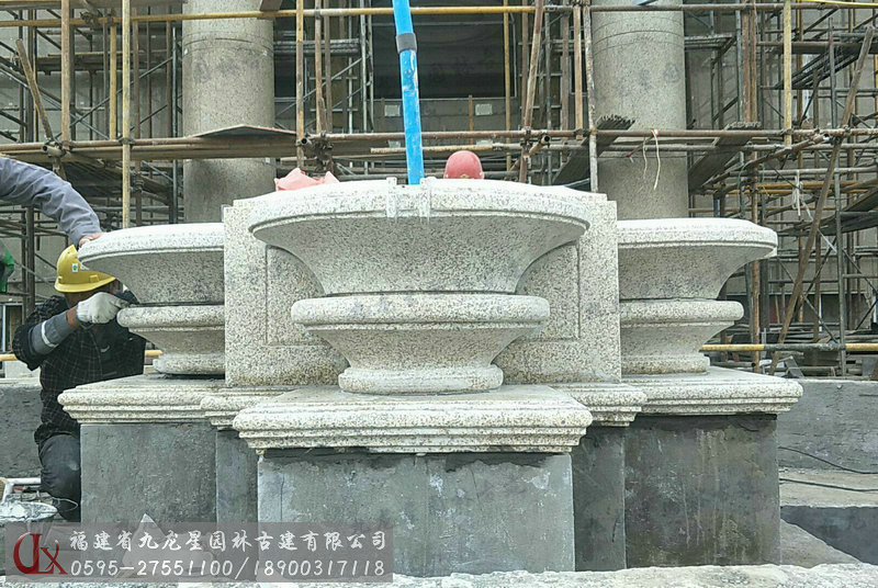 黃金麻石材加工的水缽噴泉結構致密、質地堅硬、耐酸堿、耐氣候性好,適宜在室外長期使用。
