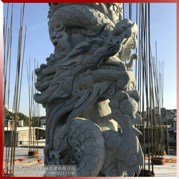 青石雕龍柱,是由天然青石雕刻制作的石雕龍柱,寺廟用在裝飾的石雕龍柱,通常會選青石雕龍柱。青石的顏色古香古色有著古韻的氣息,青石雕龍柱成品顏色莊嚴、肅穆、穩重,能夠很好的融入寺廟古建環境中,人們經常看到青石加工而成的龍柱覺得很有懷舊的感覺。