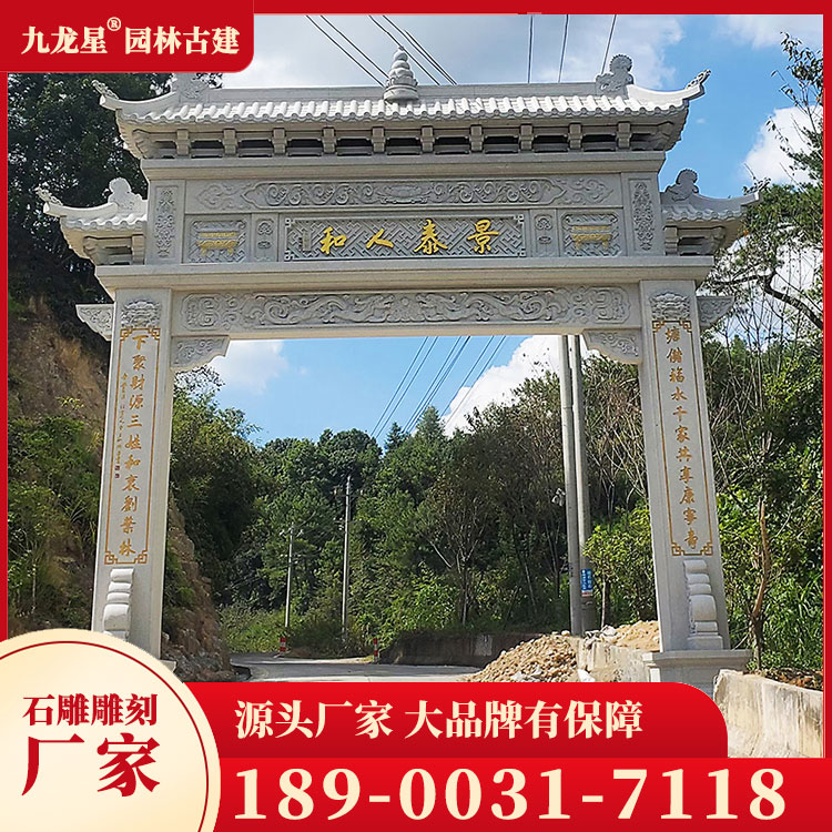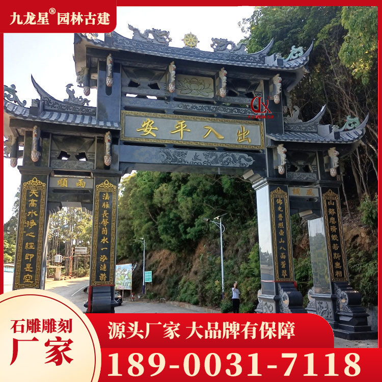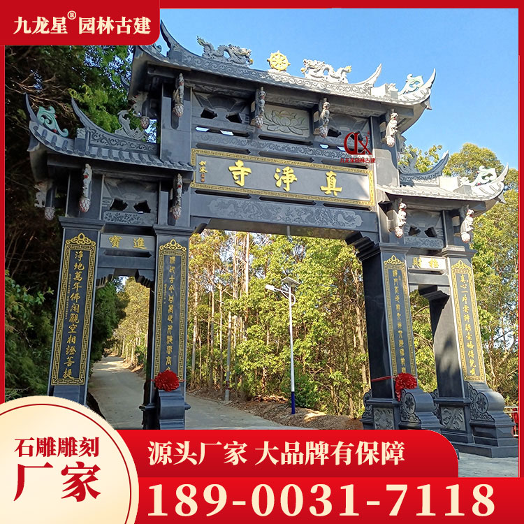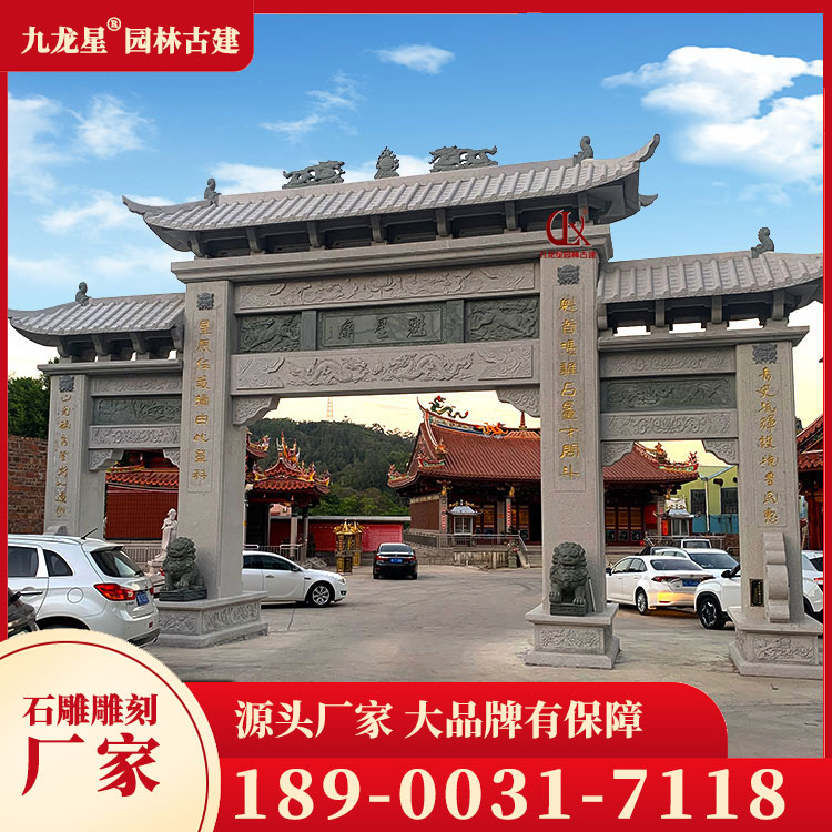 寺廟石牌坊的造型豐富多樣,有單間式、雙間式、多間式等多種形式。其中,單間式石牌坊簡潔明了,適合用于小型寺廟;雙間式石牌坊則莊重大氣,適用于大型寺廟;多間式石牌坊則更加復(fù)雜精致,通常是作為主殿前的重要建筑。此外,寺廟石牌坊的造型還受到地域文化的影響,如福建的漳州南山寺石牌坊、浙江的普陀山南海觀音禪寺石牌坊等,都具有鮮明的地方特色。