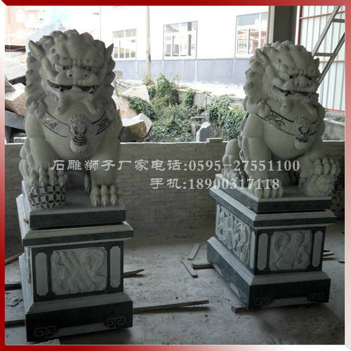 北獅雄壯威武,南獅活潑有趣。還有所謂“三王獅”,那是因為獅子是獸中之王,而獅子所蹲之石刻著鳳凰和牡丹,鳳凰是鳥中之王,牡丹是花中之王,所以有“三王獅”的稱謂。