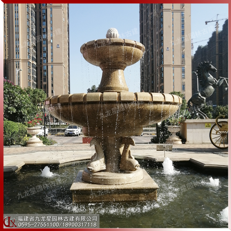 埃及米黃水缽噴泉 小區石材水缽實景圖 廠家爆款