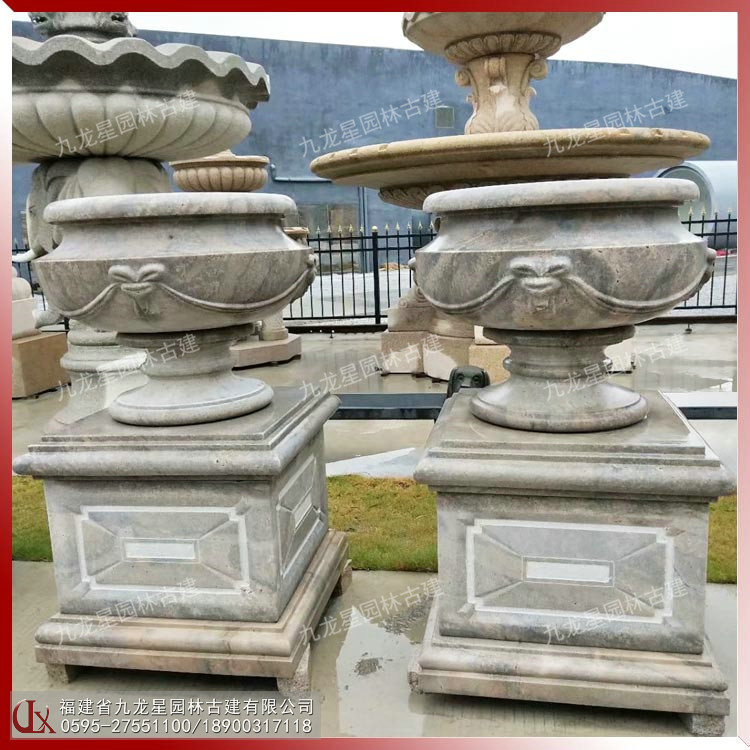 石雕花缽 埃米花缽 大理石花缽 房地產石雕小品